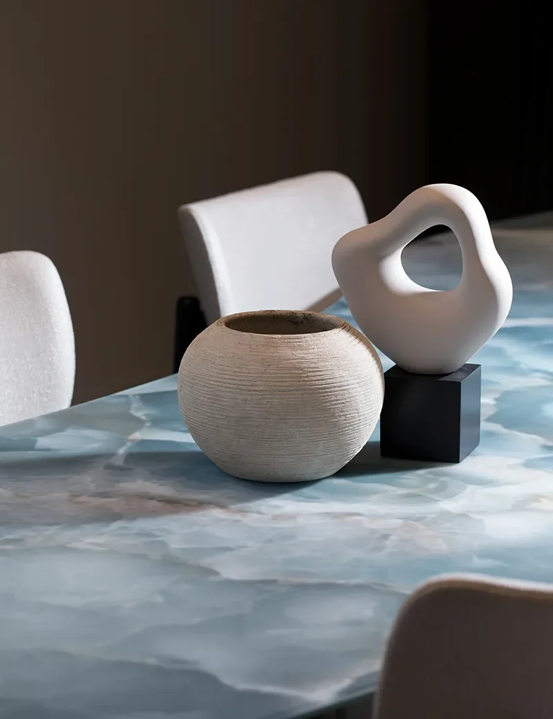 Няма съмнение – трапезарната маса е главният герой в тази стая. Мебел, която олицетворява специалните споделени моменти. При избора на маса е важно да се съобразите със стила на цялостния интериор в дома. Изборът от повърхности е изключително богат - масивно дърво, стъкло, метал, мрамор или едно изключително предложение: иновативните стъклени маси със стъкла Vetrite на Sicis. Има много нестандартни решения, които съчетават класическо и съвременно излъчване, придавайки още по-голяма индивидуалност и характер на пространството.